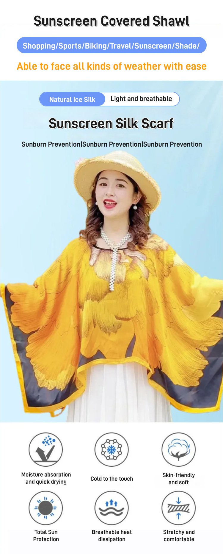 Fashionable and versatile turtleneck shawl sunscreen silk scarf